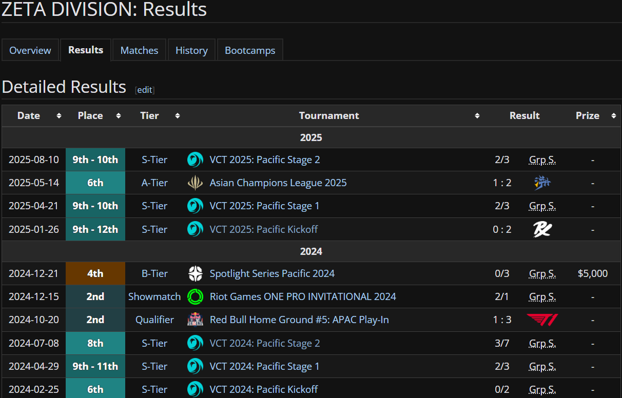 >>105882516>>105882529ZETA DIVISION is a japanese tier 1 team for Valorant esports, which plays in the Pacific region against other pacific teams.Notorious for always getting shit on by most other teams and failing to qualify for anything.It's funny because there's a lot of viewership for Valorant in Japan for tier 2 play, but their tier 1 teams are always bottom of the table.