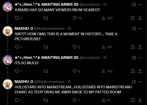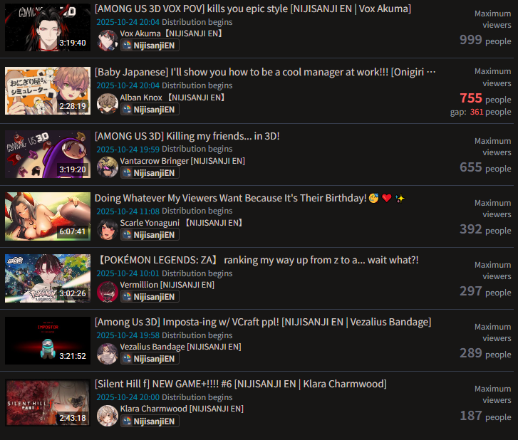 >Nijisanji has three (3) streams in the tallt>none of them reached 2k likes>the three put together barely reach 5k likesNOTICING… it’s coming to a point Nijisanji lost the ability to get to the tally natty