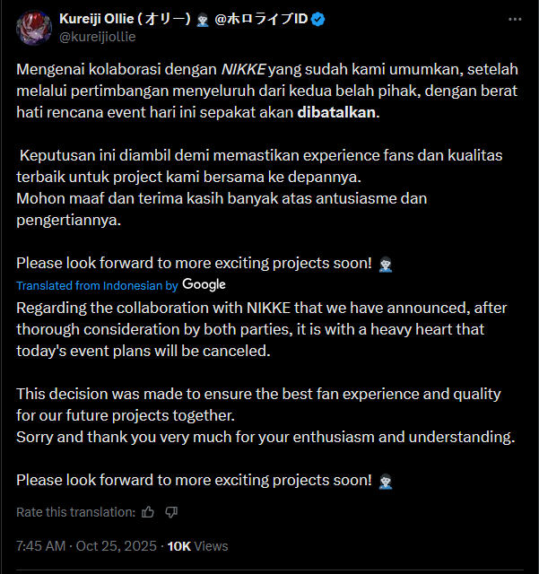 >>105883605very less likely. As anon pointed out it might be the nikke guys realizing they gave the collab to id instead of EN or JP