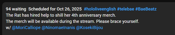 >>105883487Did Kaela cancel?