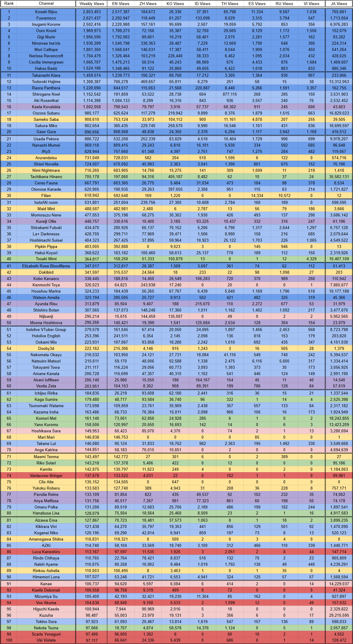 JWU does anyone have a cheat sheet for the colors in the niji google doc? I don't know niji trash well enough to identify the colors other than pink being Reimu, blue being Ike and red being Vox