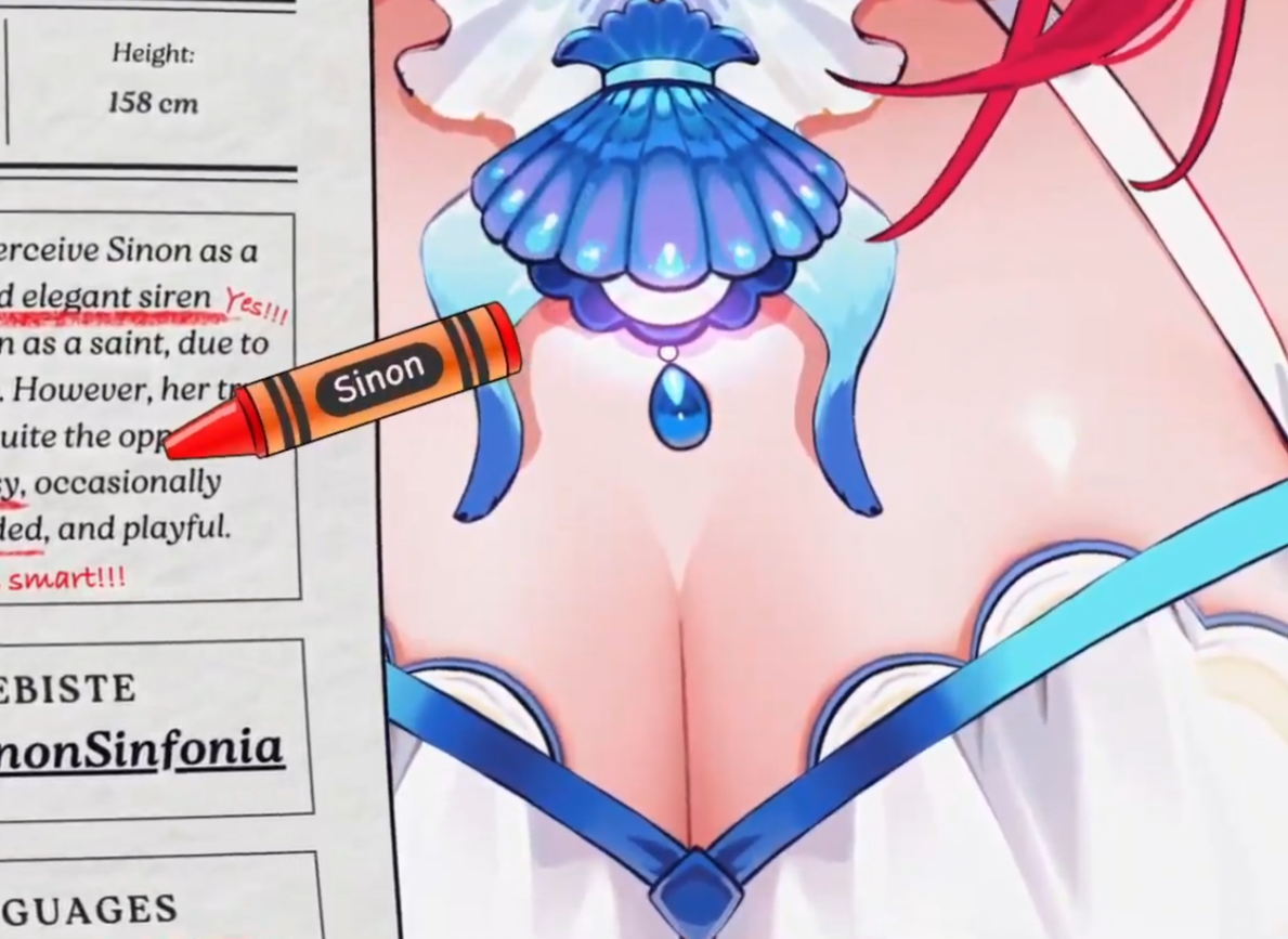 It seems like everyone has a little bit of Airi>Wilhelmia has Airi in the lore>Sinon is Korean>Bibi is a dog