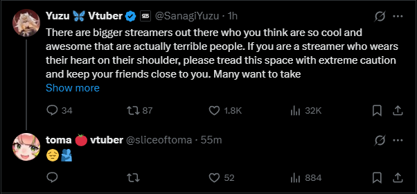 In light of recent happenings both within the vtuber community and in the wider streaming community, I am once again grateful that our controversy was just a small firecracker compared to the nukes going off elsewhere.