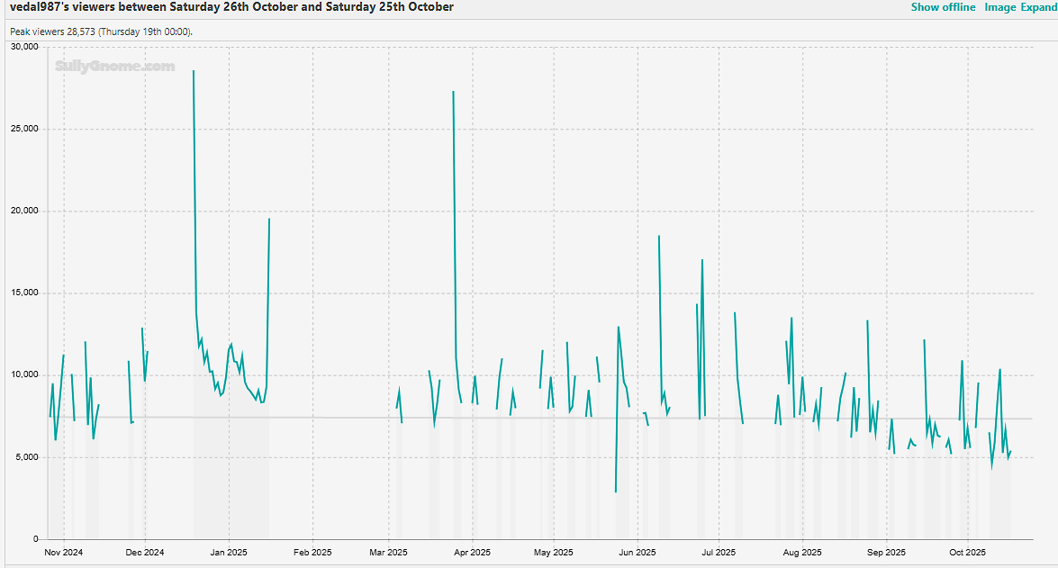 >>105956711Nga twitch doesnt count like 1.5-1.7k viewers in vedals channel because of their new retarded system