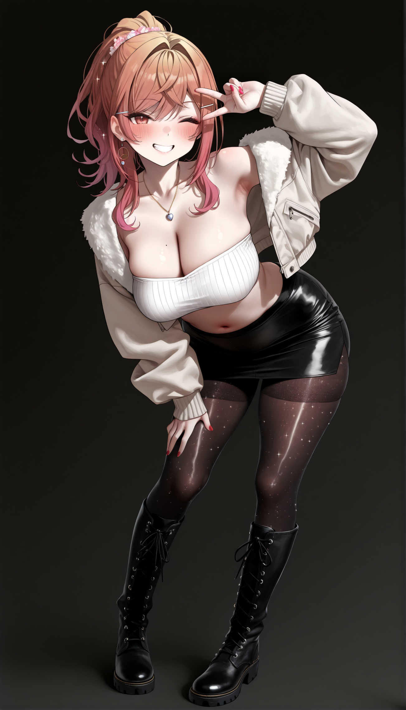 >>105983241I like the semi-bomber jacket look a lot. Maybe some knee boots, and a choker that's totally not a throat mic?