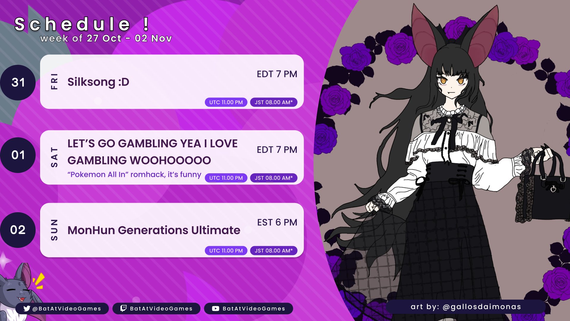 Jorkin Edition>What is /lig/?/lig/ is a thread for viewers to find, share, and discuss indie vtubers who have on average 500 viewers or more.>Why /lig/?Large indie vtubers have more net fans, but they are outnumbered by 2views by the thousands. This is a thread for the VIP, regardless of what language they stream on.>Can I shill my 499view oshi here?Considering averages fluctuate widely, all the way down to 100 is reasonable. The minimal requirement however is being Twitch partner or the YouTube equivalent in numbers.>Wait isn't that one a corpo?/lig/ is a thread for chuubas of a decent size who aren't defined by their corporate branding, either due to the small size of the corporation or the independence and lack of oversight granted to the talents>/lig/ Numbershttps://lignumbers.neocities.org/>Twitch Clips Guidehttps://pastelink.net/34vd5>VOD Archival Guidehttps://rentry.org/Vod_Archival_Guide>/lig/ VOD Archivehttps://rentry.org/Indie_Vod_Archives_lig>Koikatsu cardshttps://mega.nz/folder/JYtkXJwL#07gAQCQqI_9FsmX9oQJKSA>/lig/ Wheel of Nameshttps://wheelofnames.com/49w-z2x>Tiermakerhttps://tiermaker.com/create/-lig--16586688-3>/lig/ Chuuba Birthday Calendar (WIP)https://www.canva.com/design/DAE-XgWodVg/ofLz4QC1yPPQ4T6TTAE0fw/edit?utm_content=DAE-XgWodVg>Upcoming BirthdaysOctober 28th - VividlyViviOctober 31st - Ecto PlasmratNovember 4th - BellaNovember 8th - KrumrollNovember 9th - Bao & LeaflitNovember 11th - Mint CastellaNovember 17th - RummyNovember 24th - Layna LazarNovember 27th - DashducksNovember 29th - FanguuNovember 30th - Inislein>OC material for the OPhttps://mega.nz/folder/IIVD1IaJ#cfsRhWdJvzneIoG8HZUPuw>Duckshttps://www.twitch.tv/dashducks (embed) (embed)Other useful threads:>>>/vt//big/>>>/vt//corpo/>>>/vt//choc/>>>/vt//flip/>>>/vt//haha/>>>/vt//indie/>>>/vt//mint/>>>/vt//swarm/>>>/vt//vrt/>>>/vt//xvsj+/Previous Thread: >>105977479