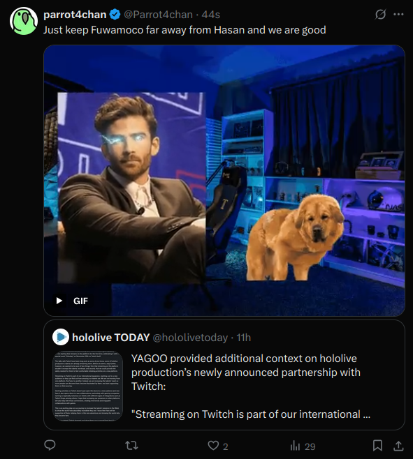 >>106069136Twitch lost its Vshojo so not its paying cover to fill in with hololive