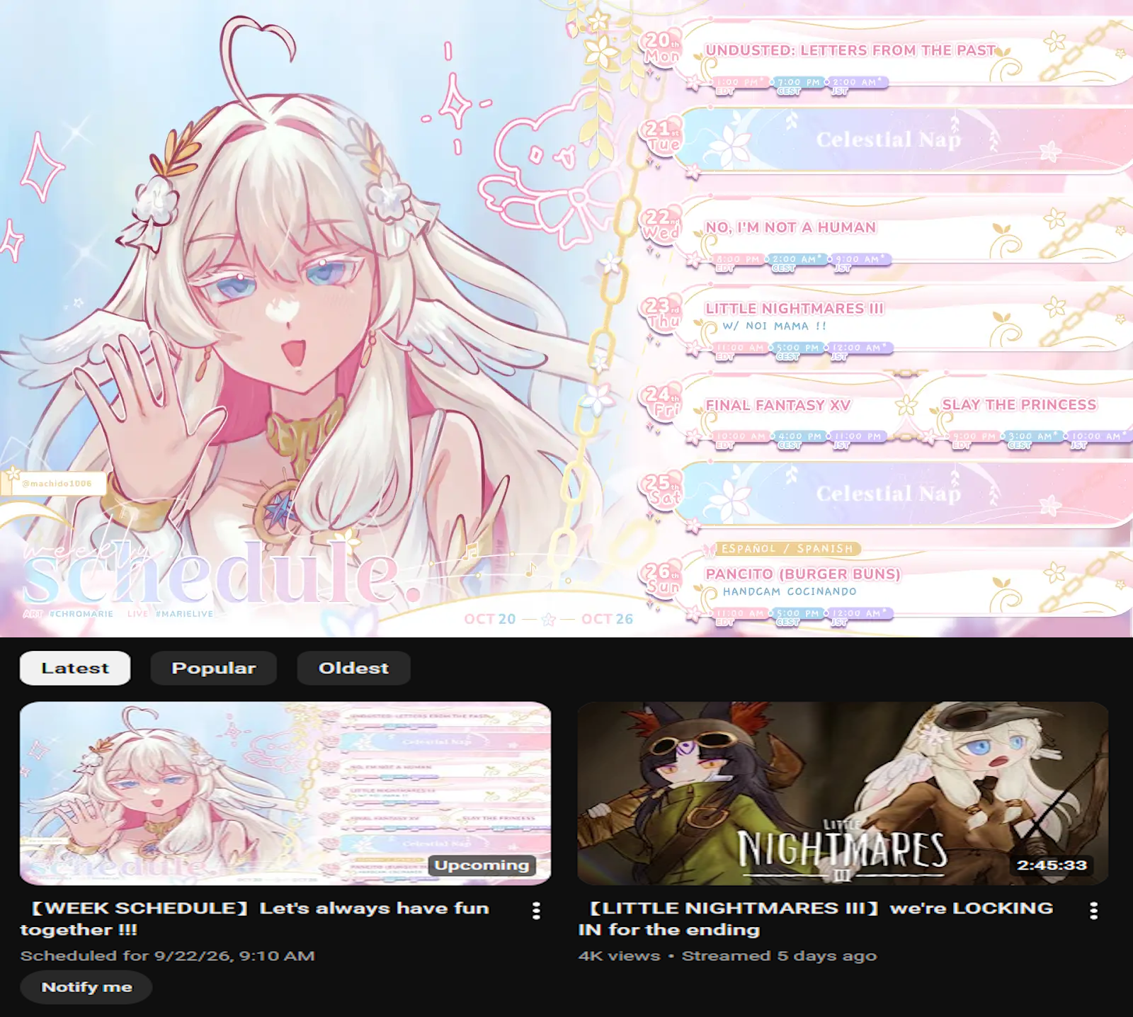 >>106073718CC's problem is she streams to short of hours. I think her only long streams are the Elden Ring ones. If she just at least streamed as long as GG does sometimes I think she would start attracting new viewers.