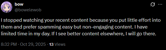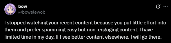 To the phasers ittno simp is gonna leave you if you continue to put effort into your content and respect your fanbasethey will however leave if you continue to shit out low effort content and fuck off to go on trips all the time