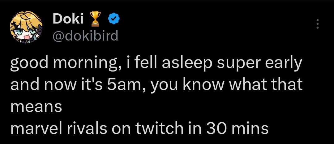 >>106143961>sleeps early>wakes up at 5 amDoki is a granny....
