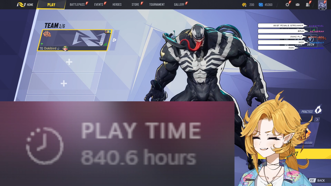 Is there any estimate on how many hours Doki has in Rivals?
