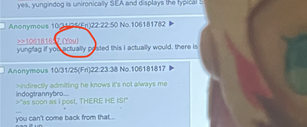 repeating what I said isn't deflecting indogtranny... try again...>>106182841he's forgetting he posted those pics after saying "I'm not bludtranny" for weeks btwbut now he's not even pretending anymoreand again, after larping as a White european Pebble but then posting a timestamp with a non-eu timezoneoofuh!
