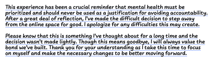 >>106239695Yeah I think everyone is reading too deep into this, and that everything was really just a result of a spat between friends and coworkers. Not everyone can mesh together all the time, and misunderstandings happen, it doesn't mean one is inherently a worse person for it