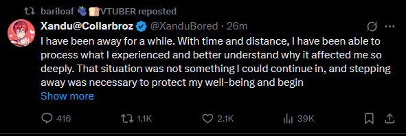 >>106240666>What happened?The boys simply doesnt get along anymore, I imagine Vox as the type of guy who forces his friends to pick a side>Who do you predict will be the collab partner?Marie