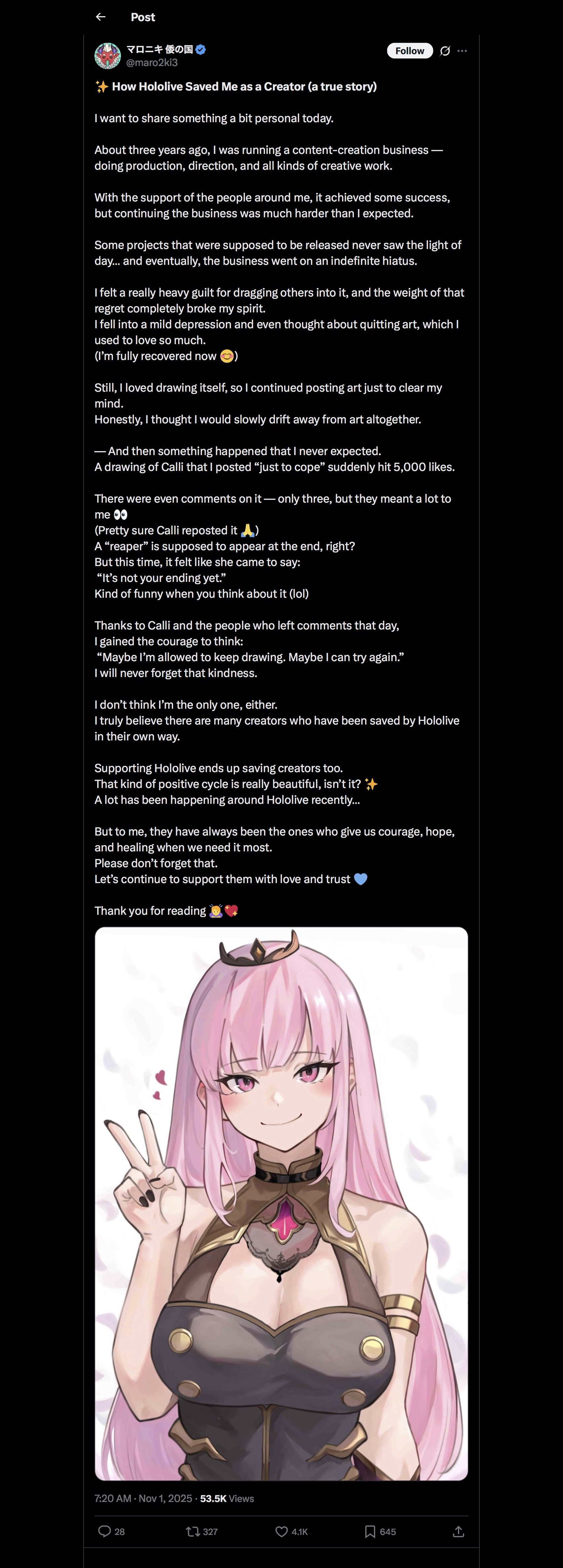 https://x.com/nico_nico_nicov/status/1984875888778100894Finally a JP holo tweet with decent engagement that doesn't bashes them.
