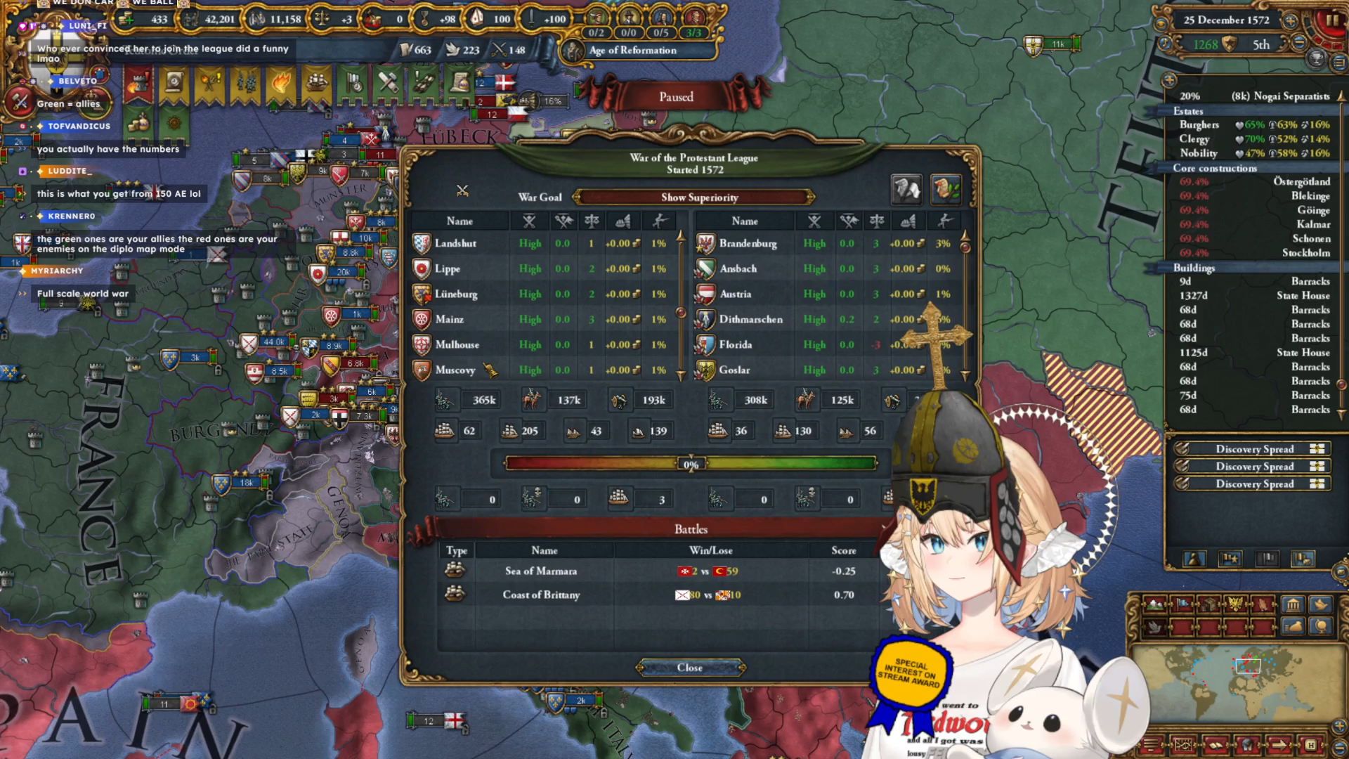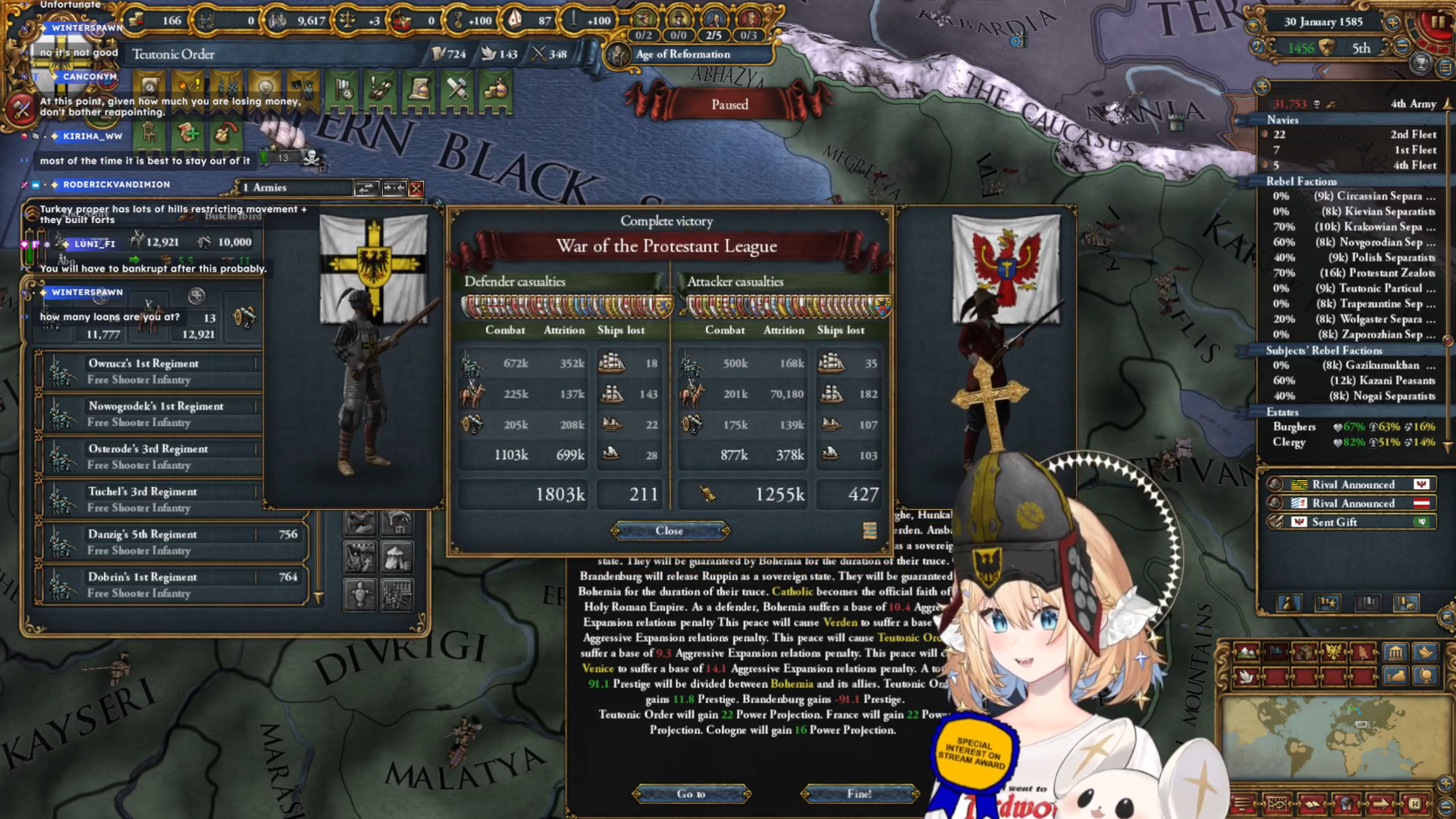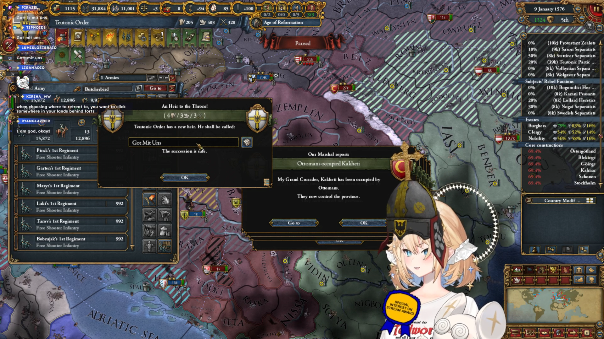 I saw an image of lumi playing the teutons and sieging a Swedish province with 50k men and it made me irrationally angry Did she go for holy horde because I noticed she had not formed prussia