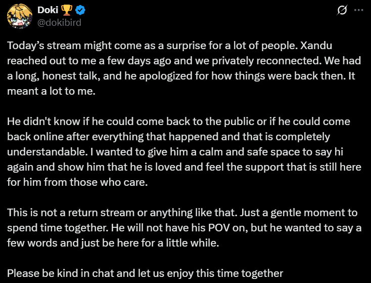 >>106280186>XanduHonestly looks like they've hashed things out, or they've always been cool with each other. Either way it's nice to see a bit more light from the situation.