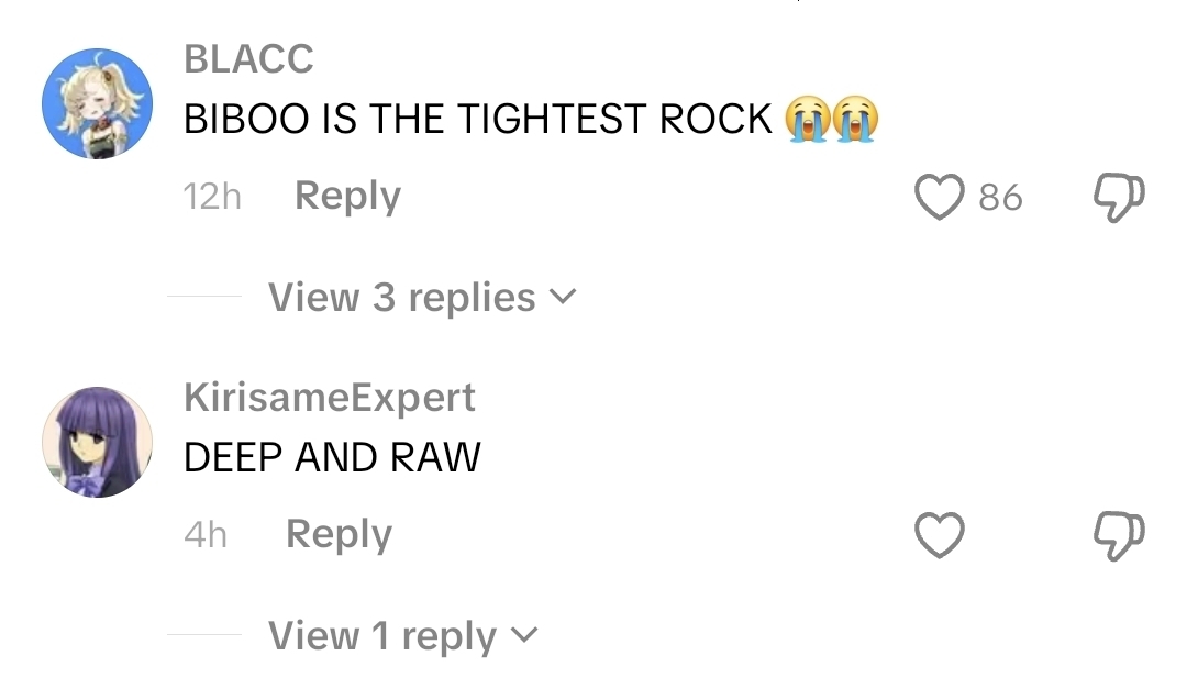Biboo is... kinda incredible, huh? Working so hard and doing so well. Like damn. And all for us. We don't deserve the rock.