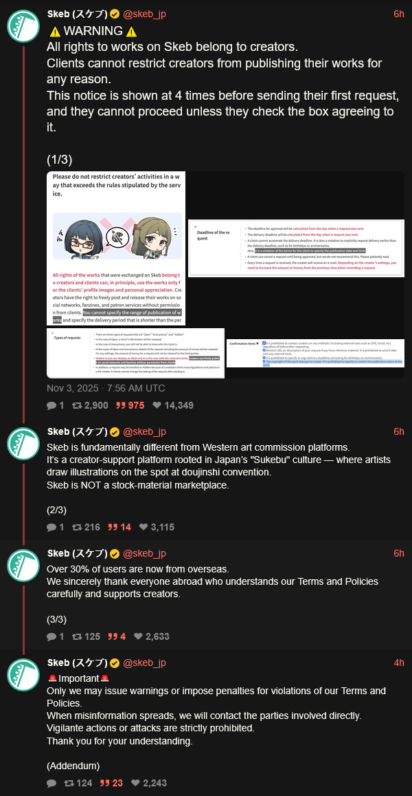 >>106275890>>106275909Skeb is extremely anticonsumer the less people use it the better like >>106276009 said the reason vtubers use it is due to cheapness but this anticonsumerist policy can't continue in 2025 Skeb needs their shit pushed in the fact that people are clowning on Bao is delusional to me.