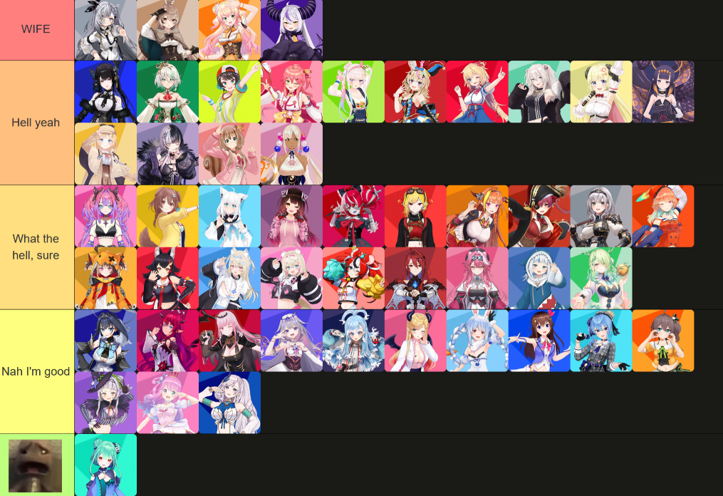 >>106276999>Zeta and Mumeibased>Nerissa, Iofi, Shiori, Risu, and Sana that highbecause of their models... right?>Kronii, IRyS, Mori, and Biboo that lowBASED