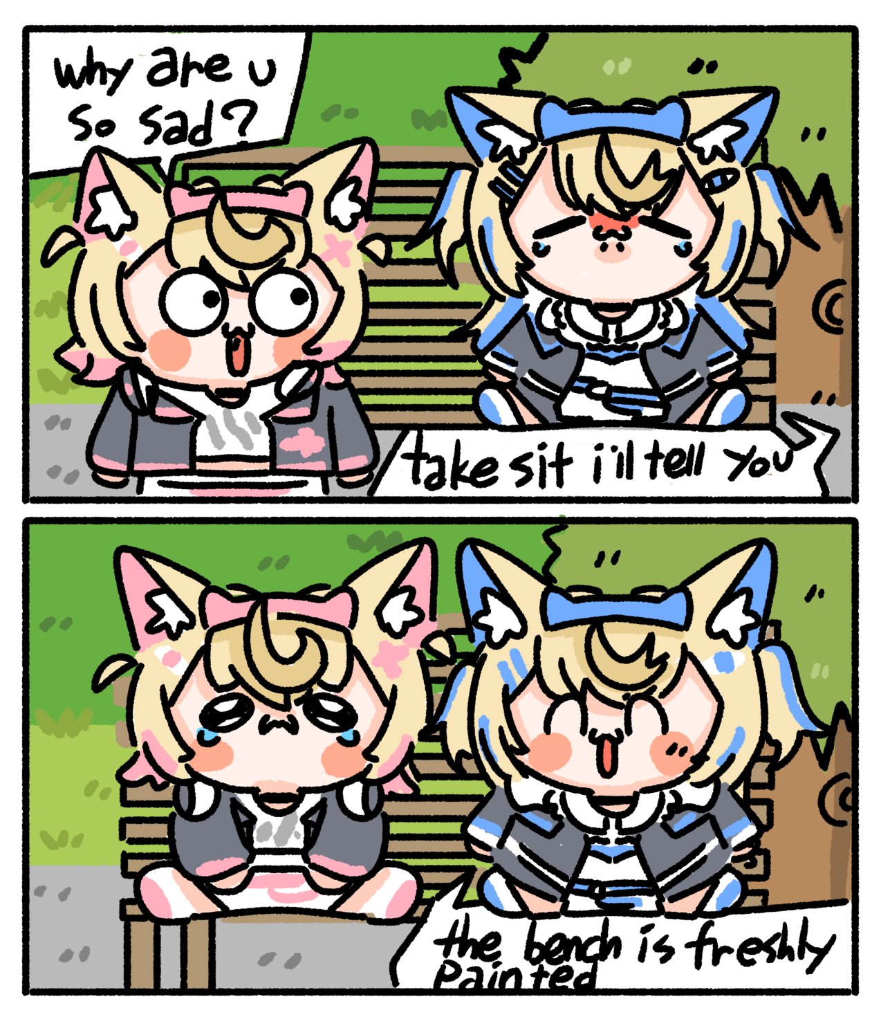 >>106277275Gay for pay is not a thing either, most of the interactions that people thought are yuribait usually amount to women being friendly with other women and more deranged shippers "filling in the blanks", that's why the ship ends up breaking, it is thought to be because they have boyfriends or something. Not to mention that the rrats about KroFau is that it broke because it DID end up being serious, but that's another matter.The most popular ships are those where there is no thought of gay for pay. OkaKoro, do you think they're faking it? AmeSame, do you think they're faking it? Autofister, do think they're faking it? There is no financial incentive on the things that they do with each other.