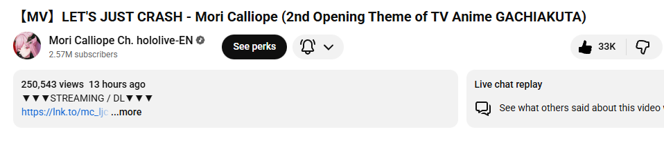 >>106281979She was responding to someone asking whether it mattered if they looped the Topic or MV of her music>>106281983Unarchived you can see the reaction /here/ and in /hlgg/ when it happened though