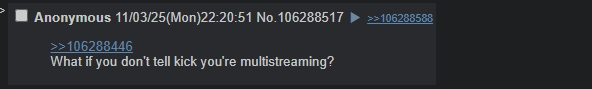 >>106288446What if you don't tell kick you're multistreaming?