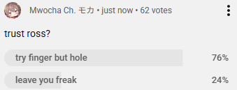 >>106294073my bad...>>106294012she will be back soon, trust>setting up for the SMP opening>gotta make sure the internet doesnt die