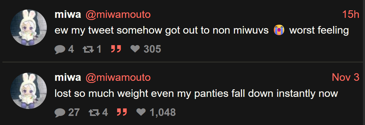 >>106313594She already cleared this alt once for a similar thing and I had to follow her again when she reopened it