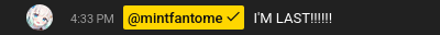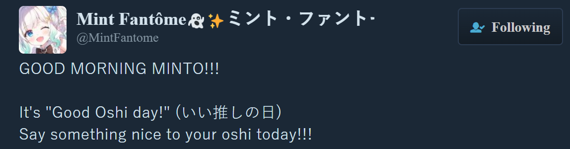 Which Mint? Edition>Her YouTubehttps://www.youtube.com/@mintfantome>Her Membershiphttps://www.youtube.com/playlist?list=UUMOcHHkJ98eSfa5aj0mdTwwLQ>Her Twitterhttps://twitter.com/MintFantome>Her Blueskyhttps://bsky.app/profile/mintfantome.ghostmaid.cafe>Twitter Spaces, Concerts, Conventions, etc.https://mega.nz/folder/f0MmFYRK#Sd2dbdggLSpw5rAs1SNY6ghttps://rentry.org/MintoConPart2>Unarchived Karaokeshttps://rentry.org/MintoKaraoke>Merchhttps://setsuna.pro/collections/mint-fantomehttps://shop.moso.moe/mint-fantome/>Gameshttps://mintfantome.itch.io/freak-or-treathttps://gioba-games.itch.io/fantome-no-nazohttps://gioba-games.itch.io/mintos-autocror3cthttps://gioba-games.itch.io/mint-n-friendshttps://ruzzfe.itch.io/second-button>Musichttps://www.youtube.com/watch?v=ccfSO2XJ67Yhttps://www.youtube.com/watch?v=Yj41JI-jmbshttps://www.youtube.com/watch?v=78NqcZGPfBUhttps://www.youtube.com/watch?v=quKNBWKmNH8https://www.youtube.com/watch?v=gz7xnpVB5OYhttps://www.youtube.com/watch?v=fnko4D9dQUghttps://www.youtube.com/watch?v=FT9IdLhAjLghttps://www.youtube.com/watch?v=EAwmnsxR1Lghttps://www.youtube.com/watch?v=4P3l3sTMYOwhttps://www.youtube.com/watch?v=dEj-WEGnx58https://www.youtube.com/watch?v=ke82vnl8_L0https://www.youtube.com/watch?v=UqI_a48RLj8https://www.youtube.com/watch?v=E2Y_Iv1P-t8>Our Divegrass teamhttps://implyingrigged.info/wiki//mint/Previous thread: >>106257165