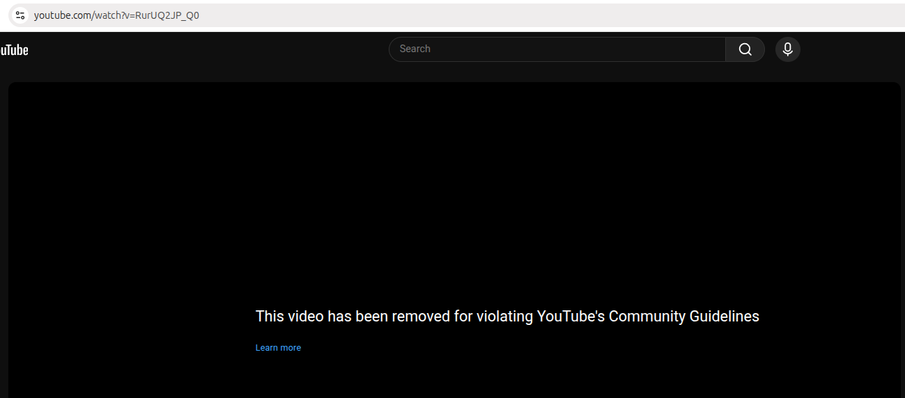 >>106303229An actual screenshot was posted >>106302599, it's due to "violating YouTube's Community Guidelines." Whatever that non-statement means.Probably something along what >>106302505 said, though, if you want specifics.
