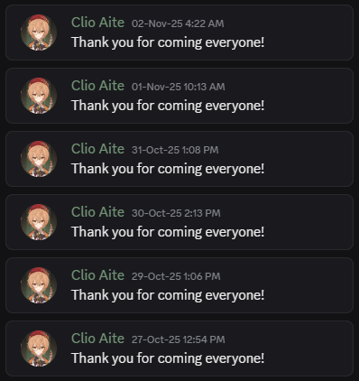 Clio streams like 16 hours a day but you need to talk to her in discord?