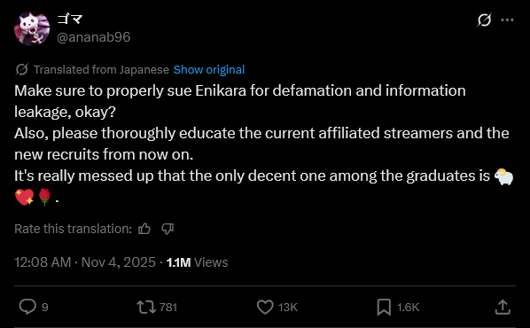 >>106319446For sure, she's asking anycolor to sue them.https://x.com/ananab96/status/1985484270195122456
