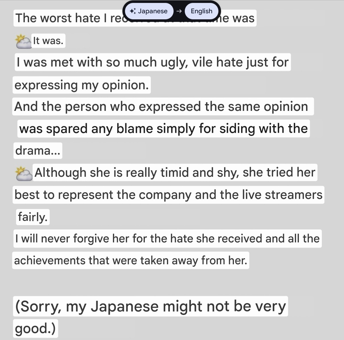 >>106322463That's purely because of JP anti defamation laws where you can get sued for badmouthing even if you have mountains of evidence lmao. EN's don't have to worry about that.