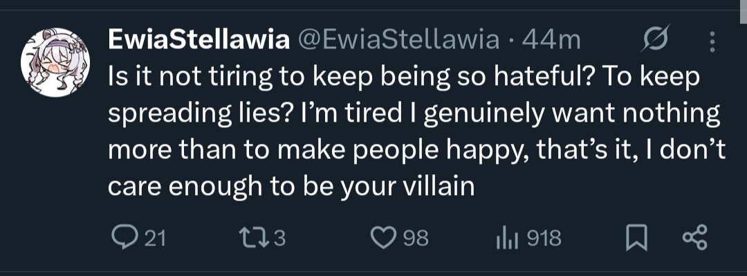 I've never seen a chuuba who was more clearly operating completely on spite. But people tell themselves all kinds of crazy things.