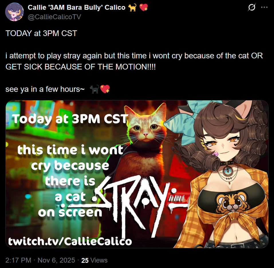 Callie playing Stray in 90 minutes