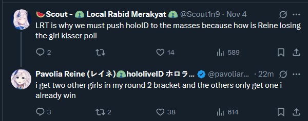 >>106400074btw i checked that pikoy account and her last tweet was a rolling eyes emoji on the day that vox did his "we are not dating" rant (which he backpedaled on btw") and all the replies were mocking her and repeating that "you really wanna be his girlfriend, don't you?" phrase.It's a shame the Reimu leaks didn't happen earlier kek