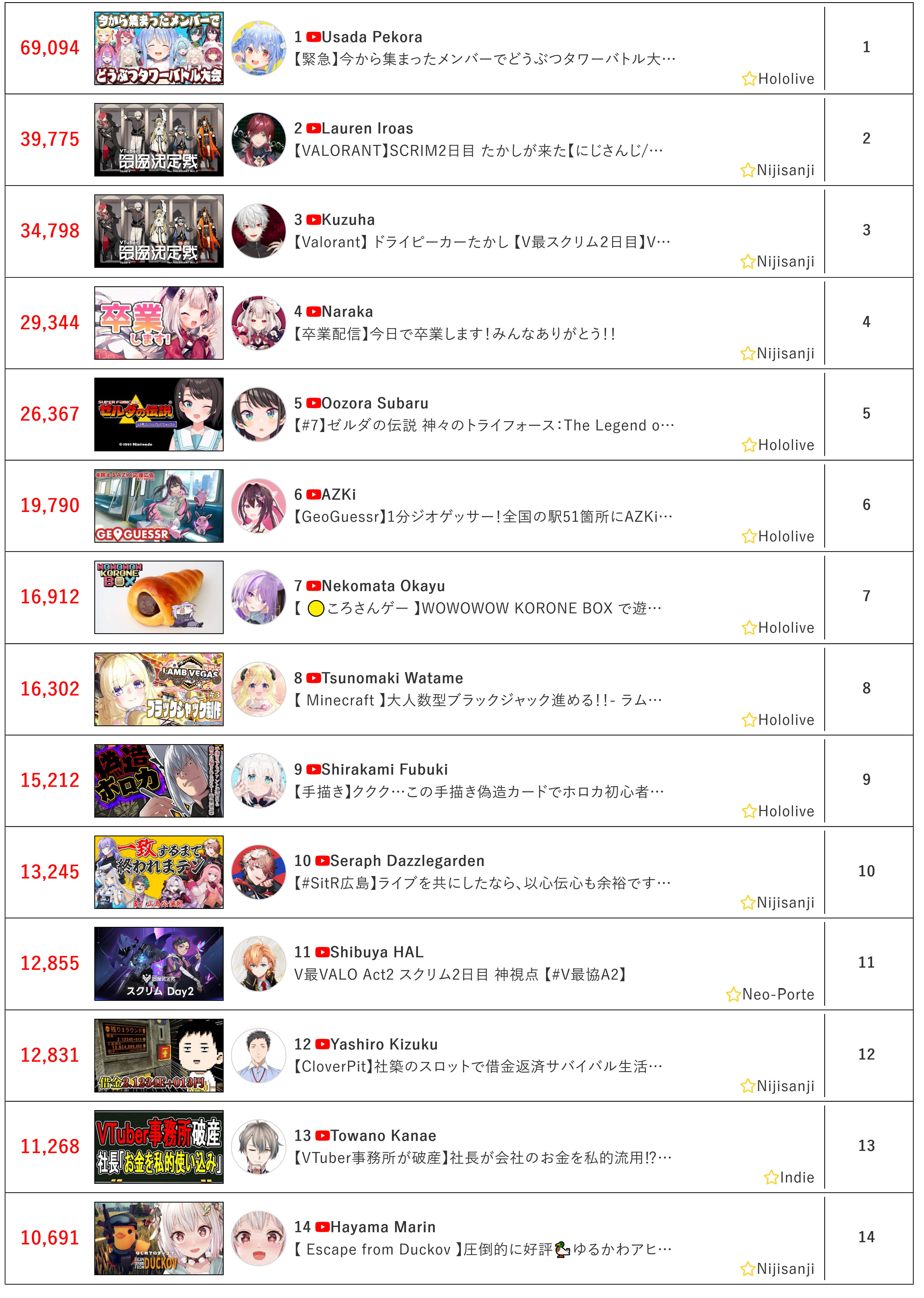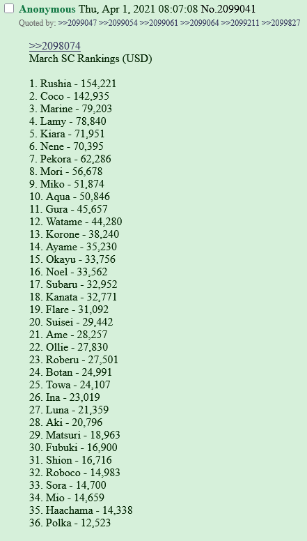 *GENERAL NUMBERFAG SITES*>https://playboard.co/en/>http://ikioi-ranking.com/>https://vrabi.net/>https://www.vstats.jp>https://live-ranking.userlocal.jp/vtuber-ranking>https://vt.poi.cat/Hololive sites>https://www.hololyzer.net/youtube/index.html>https://trackholo.live/en/>https://holo-spotify-stats.jirikunes.eu/Twitch sites>https://sullygnome.com/>https://twitchtracker.com/>https://stats.roki.sh/>https://streamscharts.com/