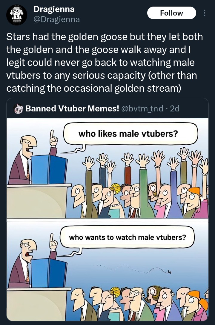 >>106400127Oh yeah vox being a shagger is shitting on Niji