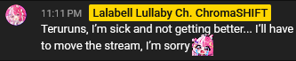 I love Daisy since her Meru time, even if I wasn't the most present viewer. She would always read my name and say things like "haven't seen you in a while". Anyway, I hope she is doing fine, and isn't actually just away due to her fragile mental again.