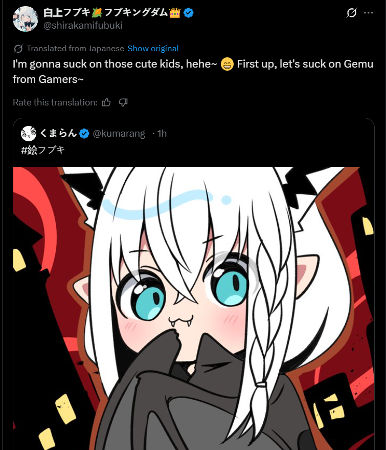 >>106483200You posted in the FUWAMOCO thread not the Bae thread.