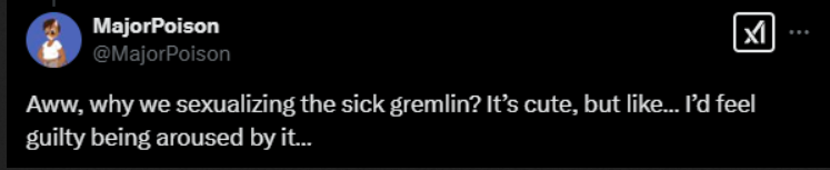>>106464863Consider that the tweet is a reply to Joey, an outspoken loli enjoyer to this day. Perhaps it was a reply making fun of his tastes.