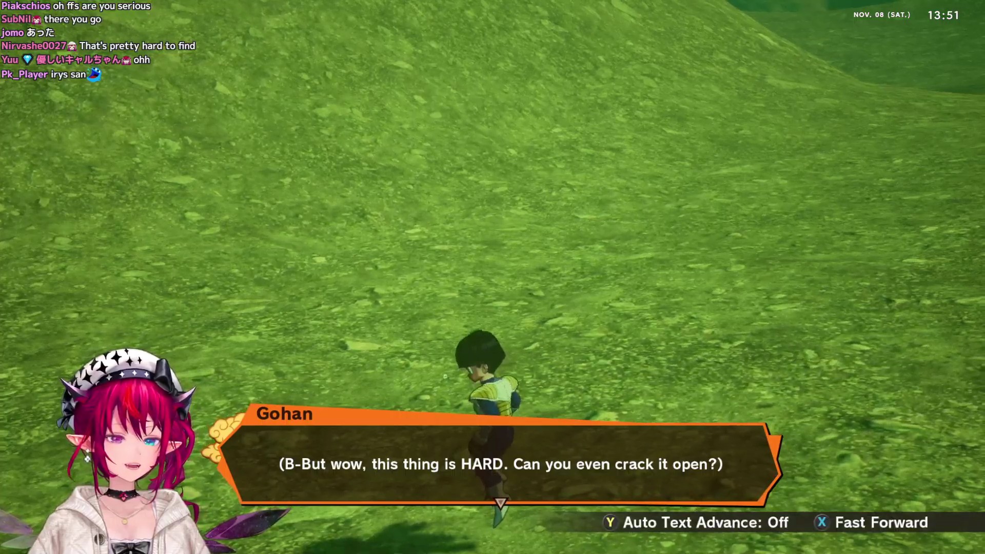 I'm out irysocrats. She doesn't get the appeal of Dragonball at all. Worst Holo playthrough of DBZ kakarot.