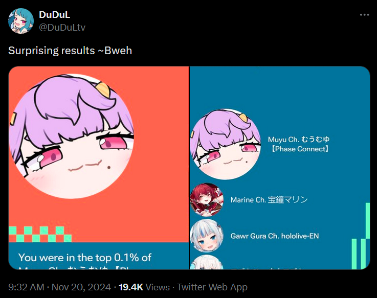 >>106454685I thought he defected to some random phase chuuba last year, but looks like he's still mostly (re)posting holo and Saba stuff