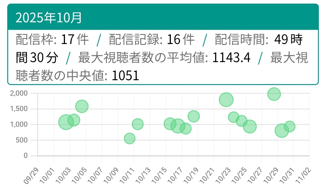 >>106538202NOV 2025 EN BRONZE11/1 - Gigi - Halloween VRChat: 7,68811/2 - Gigi - Accessory Reveal: 22,05511/3 - Calliope - Unarchived Karaoke: 12,36611/4 - Gigi - Girls' Night: 12,60611/5 - Bijou - Dead Space 2: 9,01211/6 - Raora - Girls' Night: 6,76411/7 - Ina'nis - Pokemon Legends Z-A: 7,31211/8 - Ina'nis - RAFT: 12,48011/9 - Nimi - Dog Witch: 6,76811/10 - FUWAMOCO - Fast Food Simulator: 7,150PER COMPANY9x: Hololive English1x: IndiePER STREAMER3x: Gigi2x: Ina'nis1x: Calliope, Raora, [FUWAMOCO, Bijou], Nimi