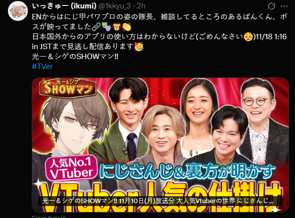 >nijisanji is officially the Number.1 Vtuber agency according to JP Television