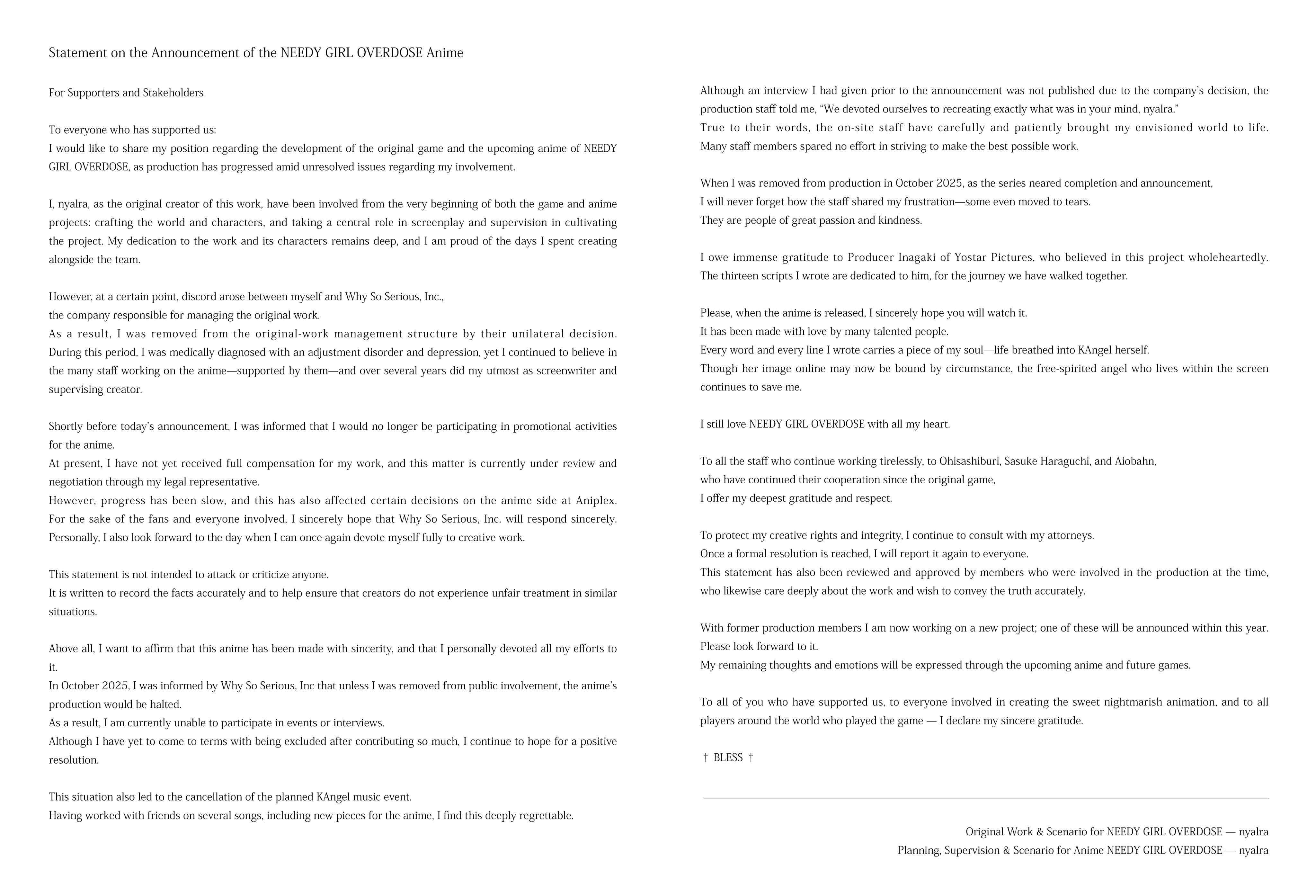 >>106541248he's also kicked out of the anime productionhttps://x.com/nyalra/status/1987810101571572145