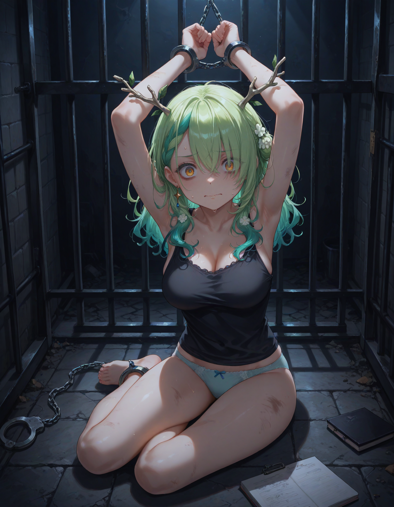 >>106550983Elira in her 3rd costume with the suit and paizuri window, with bigger breasts, giving Selen/Doki an angry paizuri