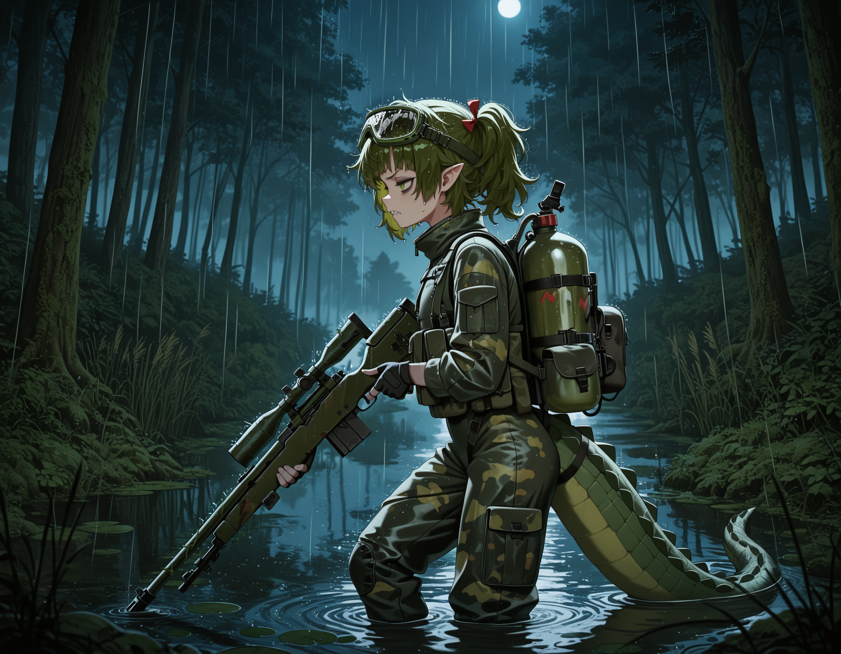 >>106550983Hypermuscular Tomoe Umari in tactical gear.