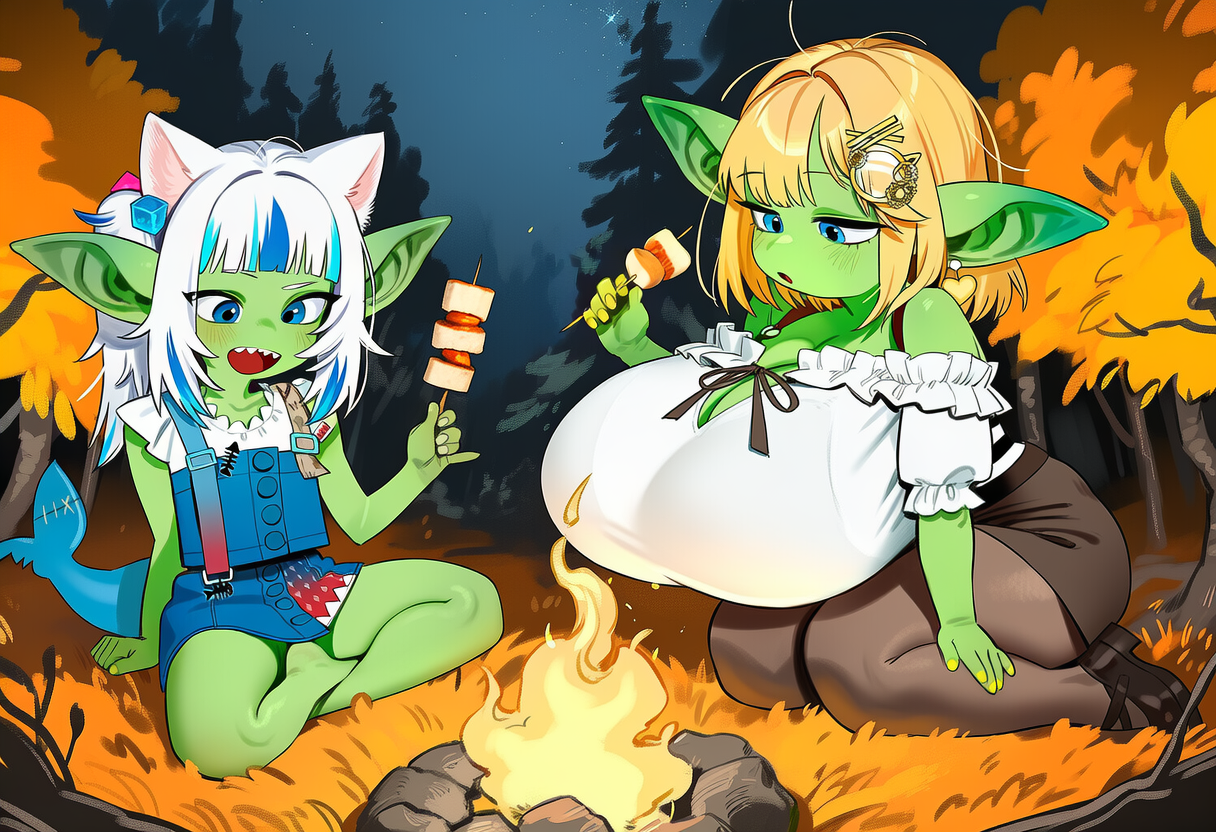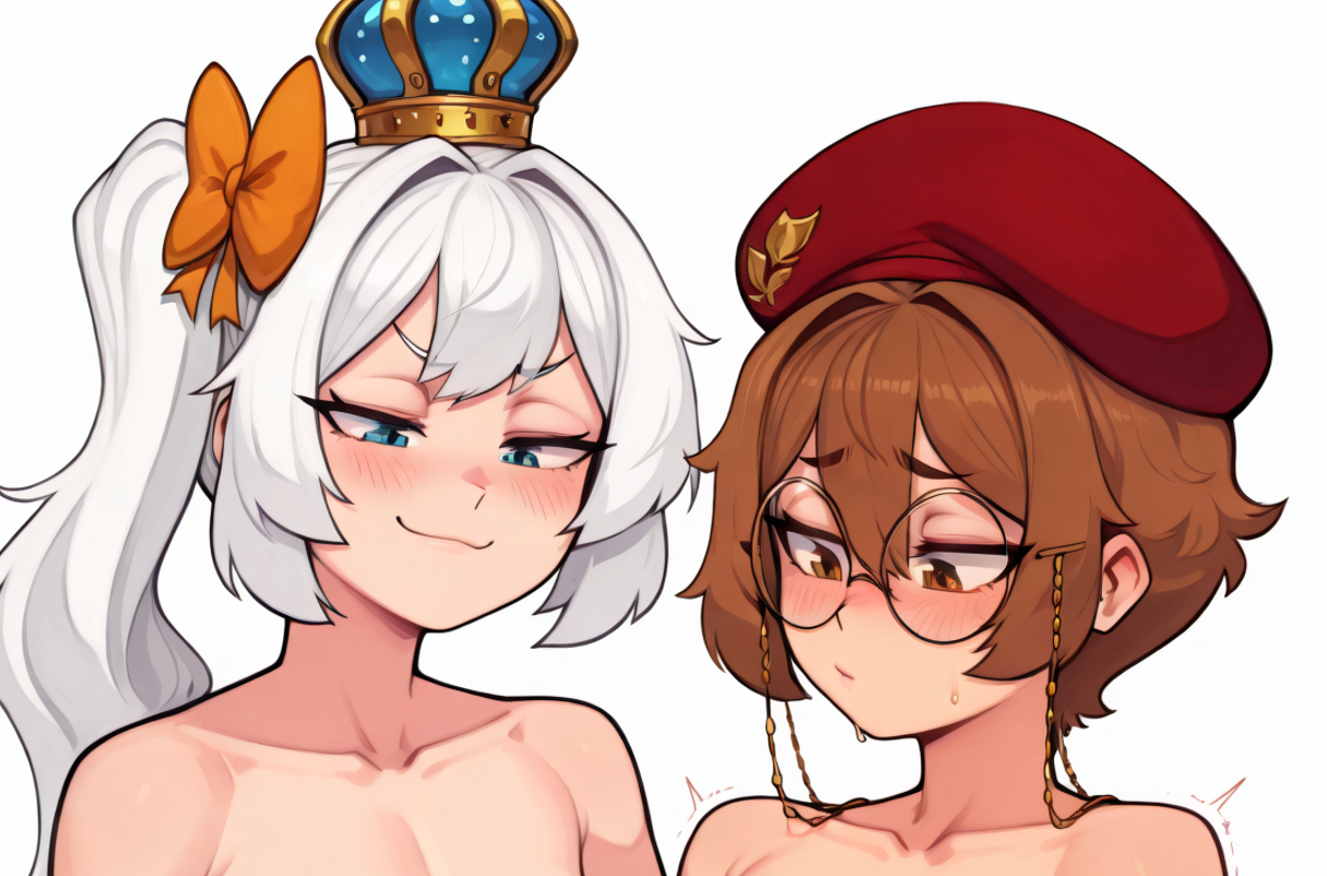 >>106570468I'm the bush-prompter. Is it really coming out over-baked?The harsh shading is kind of a trademark of Nuezou, so I like the way it looks.Some of the clits look kinda fried, as does the white pubic hair on Botan. But I fucked up and prompted white pubic hair rather than gray, so of course it looks over exposed.>If you feel Medium Breasts is too big, that probably has more to do with your artist blend.Yes, that's exactly it. That's why I learned to prompt with negatives to wrangle results. My medium breasts are almost always at least "large", while small are always properly small. You're right that I could lower the weights. I should probably get into a habit of doing that. But I mean I got the tummies I wanted by using negatives to trim the results.As I wrote earlier, TLDR: I wanted them to have a sweetspot amount of soft hag fat, without a proper belly.I am concerned if it looks over-baked or deep-friend to people though. I thought it looked great ;_;